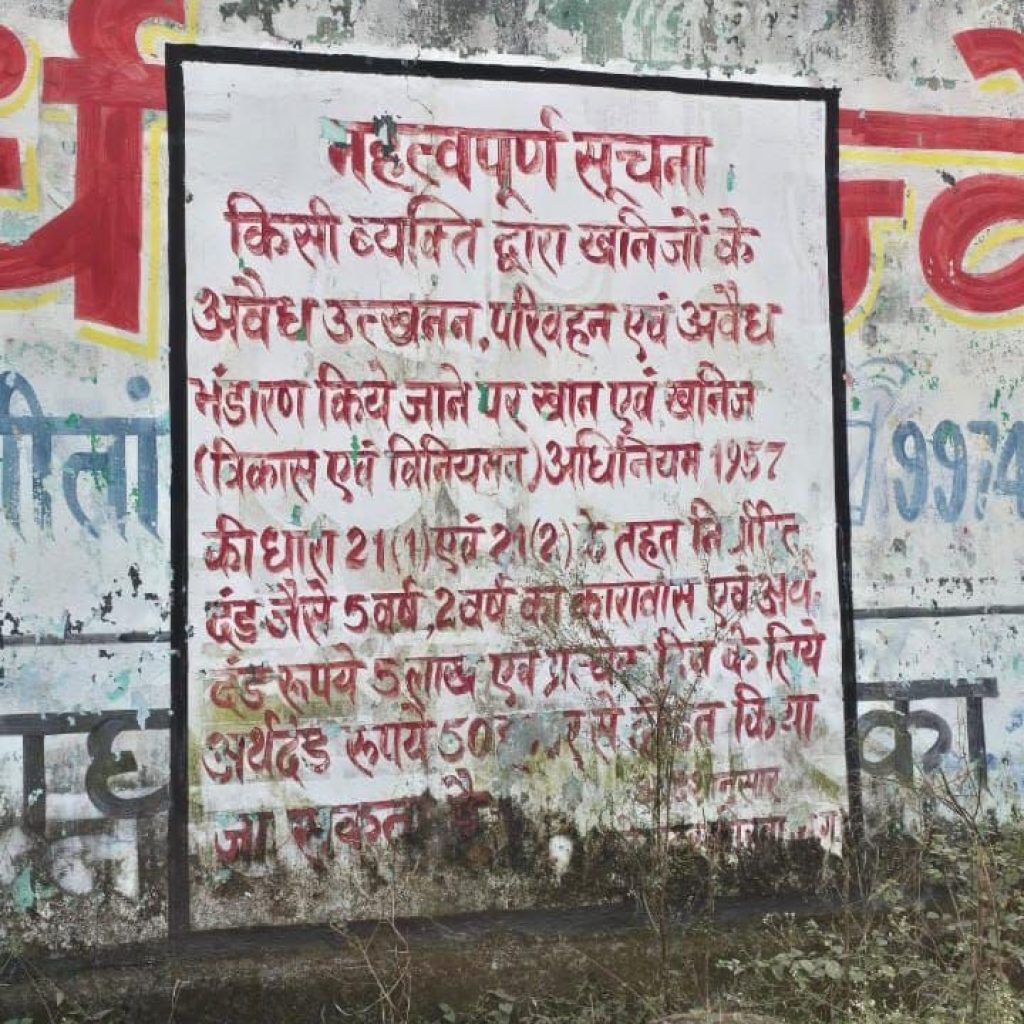 इस सुचना पटल को दरकिनार कर रेत माफिया बेखौफ होकर बिना किसी आदेश व परमिट के दर्जनों ट्रैक्टर लगाकर अवैध रूप से रेत की उत्खनन कर मार्केट में बेचा जा रहा है।
